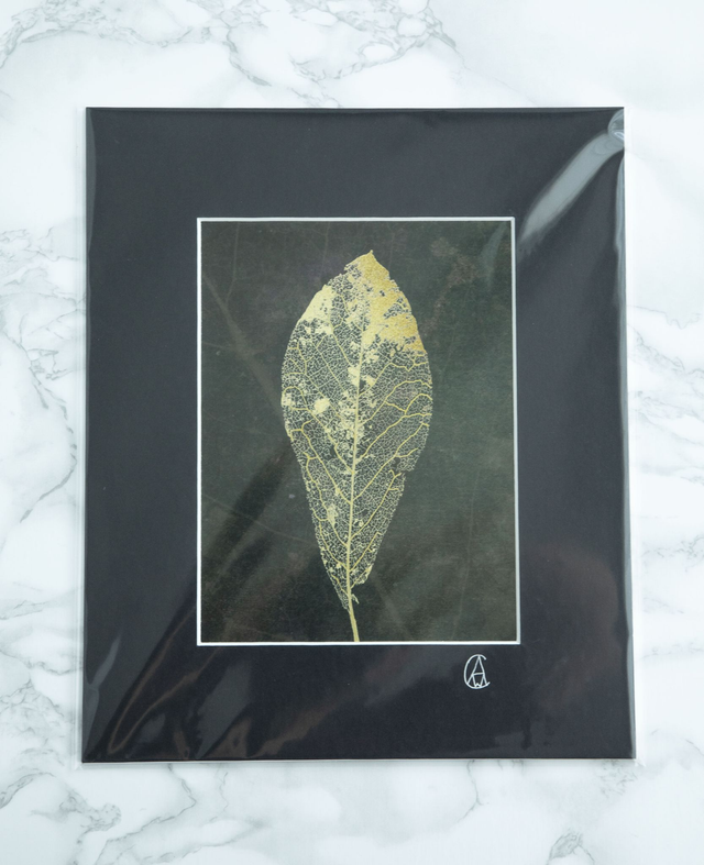 Laced Magnolia Leaf Study III is a mounted print protected in a cellophane wrap.